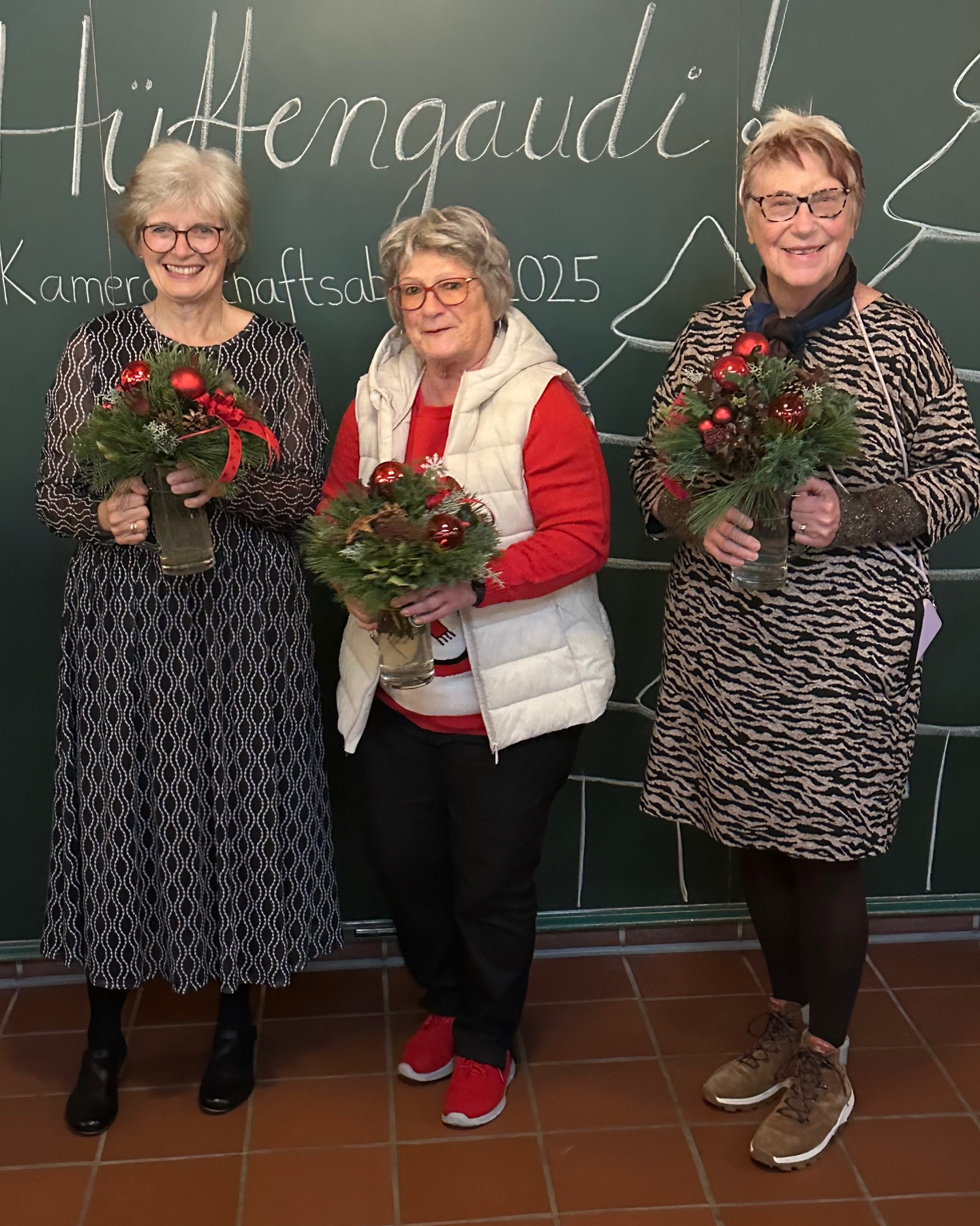 Die Jahresabschlussfeier fand in froher Runde am Samstag, 6. Dezember, statt. Wir konnten mehrere unserer Mitglieder für ihre langjährige Mitgliedschaft ehren: 80 Jahre, 75 Jahre, 70 Jahre, 40 Jahre und 25 Jahre.