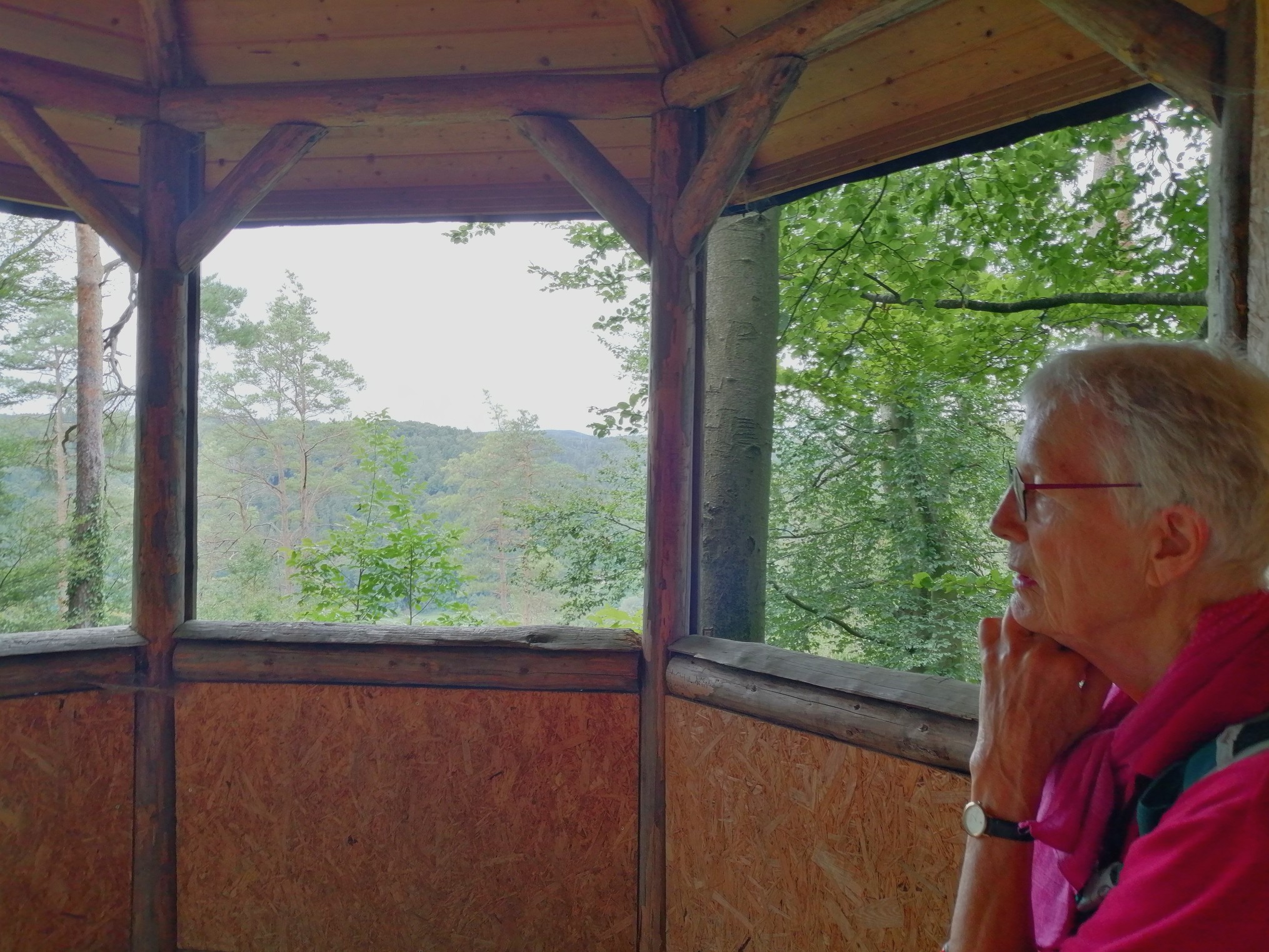 Bahnfahrt bis Eyach, Wanderung am jüdischen Friedhof vorbei nach Mühringen, über die alte Grenze zwischen Württemberg und Hohenzollern nach Bad Imnau, Eichhörnchenweg zur Binder-Madonna, Einkehr im Gasthof Adler in Bad Imnau, Rückfahrt mit ÖPNV. Viel schattiger Wald.