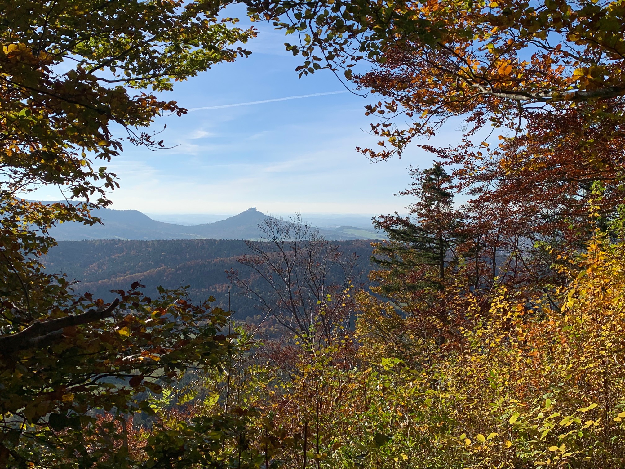 Mit Bahn und Bus gelangen wir zum Ausgangspunkt unserer Wanderung in Salmendingen. Wir wandern auf den Kornbühl mit der Salmendinger Kapelle, eine der heiligen Anna geweihte Wallfahrtskapelle. Von hier führt die Wanderung ohne nennenswerte Steigung zum Dreifürstenstein, einem markanten, knapp 900 m hohen Bergvorsprung, der nach drei Seiten abfällt und bis 1806 tatsächlich ein Dreiländereck war. Der sich am Albtrauf befindliche Grenzstein markierte die Grenze der fürstlichen Territorien von Fürstenberg, Hohenzollern und Württemberg. Bis heute bildet der Vorsprung einen wichtigen Grenzpunkt der beiden Landkreise Tübingen und Zollernalbkreis. Von hier hat man herrliche Ausblicke auf die Burg Hohenzollern und weitere Berggipfel. Wir wandern hinab nach Belsen, wo wir den Tag in der Gaststätte Bahnhof Belsen ausklingen lassen. Mit der Bahn geht es zurück nach Tübingen. Rückkehr gegen 18.30 Uhr.